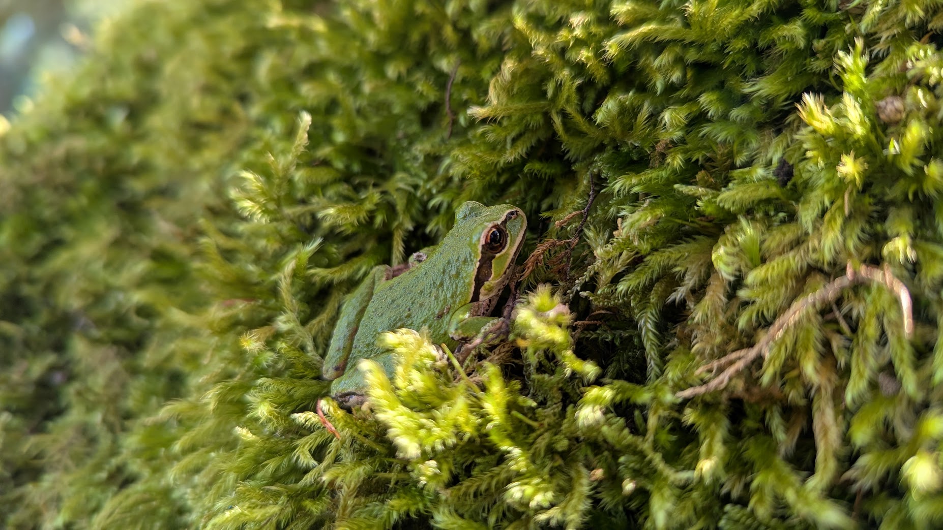 Her interest in photography began at a very young age. When she was a toddler, her mother made a cardboard camera for her to play with. Maia told her she could not see through it, so Ying Ying cut a small opening, and a new creative outlet was discovered. Ying Ying found books on photography and the basics of composition. Now, at only ten years old, Maia captures extraordinary moments of life in the Moss Garden. One of her favorite photographs is of a tiny tree frog peeking from a clump of moss. She especially enjoys photographing moss in sunlight because of the glowing effect it creates.